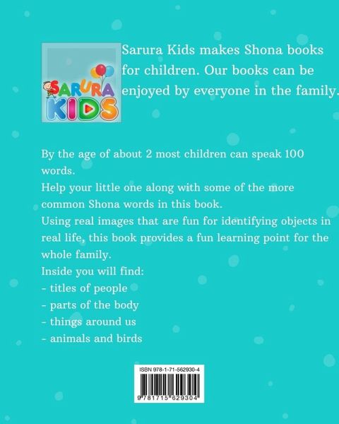 By the age of about 2 most children can speak 100 words. Help your little one along with some of the more common Shona words in this book. Using real images that are fun for identifying objects in real life, this book provides a fun learning point for the whole family. Inside you will find: - titles of people - parts of the body - things around us - animals and birds