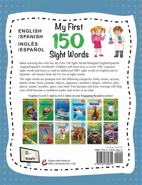Perfect for Kids Learning a Second Language! Make learning fun with the My First 150 Sight Words bilingual English/Spanish (Inglés/Español) workbook! Children will learn how to write 150+ common sight words and learn to read an additional 500+ sight words in English and in Spanish-all chosen from the Fry list of sight words. The sight words are grouped into the following categories: body, senses, actions, family, home, food, animals, objects, opposites, numbers, shapes, vehicles, jobs, places, nature, weather, space, and time! Fun pictures and letter tracings will help your child become a confident reader and writer in no time.