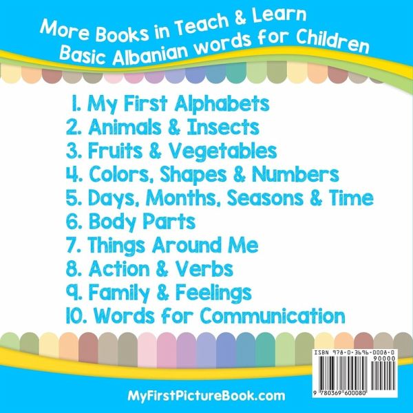 Did you ever want to teach your kids the basics of Albanian ? Learning Albanian can be fun with this picture book. In this book you will find the following features: Albanian Alphabets Albanian Words English Translations Some Important Information Regarding Our Books: Each Alphabet has its own Page. All Pages are in Color. No Transliterations (Pronunciations). You (the Parent) should be helping your child learn how to pronounce.