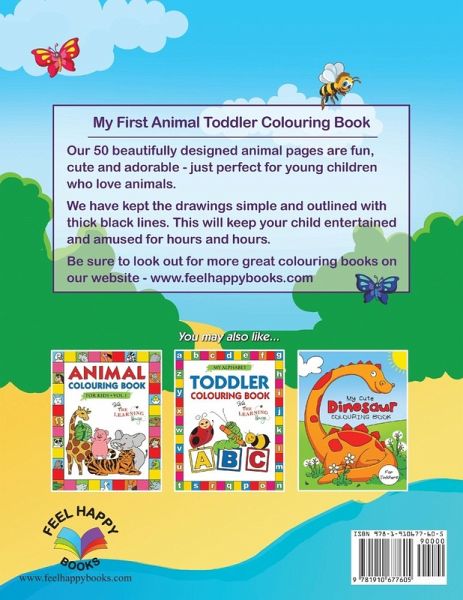 Our 50 beautifully designed animal pages are fun, cute and ADORABLE - just perfect for young children who love animals. We think this is the best animal colouring book for toddlers and young kids as we have kept the drawings simple and outlined with thick black lines. We also name each animal so children can learn & colour at the same time. Imagine your child's happy, excited face when you give them this educational kids animal colouring book, this will keep toddlers, preschoolers and kids aged 2-5 entertained and amused for hours and hours. As a thank you for buying this book, inside you will discover how to download and print a FREE BONUS COLOURING EBOOK with 20 selected pages from our other best-selling toddler and kids colouring books. Why Buy THIS Book? Hand-drawn unique illustrations that are beautiful but simple, cute and funny! Massive value! - this BIG colouring book has loads more pages than most others. Illustrations are on one side only so you can tear them out to frame and keep. No issues with markers bleeding through the page and ruining an image underneath. Each page is a large 8.5 by 11 inches and printed on bright white paper. We have created something special which we are very proud of. This lovingly created animal colouring book also makes thoughtful birthday presents or Christmas gifts/stocking stuffers for friends or family. Who do you know who might also enjoy this toddler animal colouring book? Animals featured: bat, bear, beaver, bee, butterfly, camel, chicken, chipmunk, cow, crab, crocodile, dog, dolphin, duck, eagle, elephant, frog, giraffe, gorilla, hippopotamus, horse, kangaroo, kitten, koala, lion, meerkat, monkey, mouse, octopus, ostrich, owl, panda, parrot, peacock, penguin, pig, rabbit, reindeer, rhinoceros, seahorse, shark, sheep, sloth, snail, snake, tiger, turtle, walrus, whale & zebra.