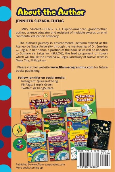 This book on animals is the first in the Children's Nature Book Series (Bi-Lingual English Tagalog) for Global Filipinos. These BILINGUAL and ENVIRONMENTAL picture books series are conceptualized for the millions of descendants of Filipinos living in different parts of the world called GLOBAL FILIPINOS. It is the author's goal to plant a seed in the minds of future generations, and make a connection between the children's place of birth and the land of their ancestors using language as a springboard. At the same time, she also wants to open their young eyes to nature by providing pictures instead of cartoonish depictions of living organisms. By doing so, the author sincerely hopes to help awaken in the hearts of new generations of Global Filipinos, love for the PHILIPPINES and the ENVIRONMENT.