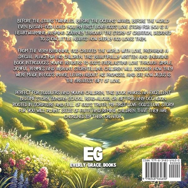 Before the stars twinkled, before the oceans waved, before the world even began - God loved you. My First Love: God's Love Story for You! is a heartwarming, rhyming journey through the story of creation, designed to show little hearts how deeply God loves them. From the very beginning, God created the world with love, preparing a special place for His children. This beautifully written and engaging book introduces young readers to God's everlasting love through simple, joyful rhymes and vibrant storytelling. Children will discover how they were made in God's image, learn about His promises, and see how Jesus is the greatest gift of love. Perfect for toddlers and young children, this book makes an excellent bedtime story, Sunday school read-aloud, or gift for any occasion. Rooted in scripture and full of God's truth, My First Love: God's Love Story for You will plant seeds of faith and remind children that they are cherished by their Creator -- their Abba, Daddy!