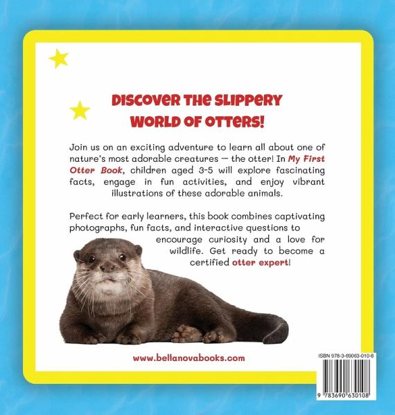 Discover the Fascinating World of Otters with 'My First Otter Book'! Dive into the playful waters of rivers and oceans to meet Otis, the curious otter! Perfect for children aged 3-5, this delightful picture book is packed with fun facts, vibrant photos, and interactive activities that will captivate young minds. What's Inside? ¿ Engaging Fun Facts: Learn all about otters, from their webbed feet to their favorite activities. ¿ Interactive Adventures: Join Otis on exciting activities like counting rafts, finding fish, and exploring their habitats. ¿ Beautiful Photos: Stunning, high-quality images bring the story to life, making learning fun and visual. ¿ Interactive Play: Encourage your child's participation with questions and games on every page. ¿ Otter Expert Certificate: At the end of the book, kids can earn their very own Otter Expert Certificate! Parents will love how this book combines education and entertainment, fostering a love for reading and nature in their little ones. Perfect for bedtime stories, classroom reading, or a fun afternoon activity. Make learning a splash with My First Otter Book! Get your copy today and let the adventure begin!