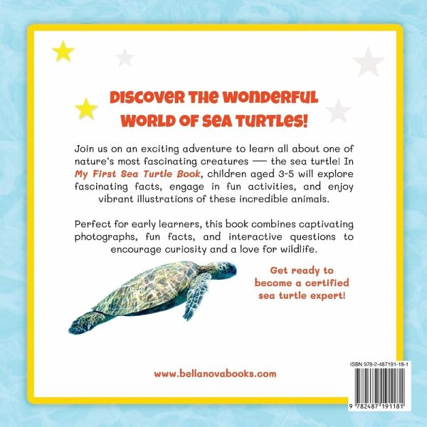 Dive into the Amazing World of Sea Turtles with 'My First Sea Turtle Book'! Explore the wonders of the ocean with Shelly, the friendly sea turtle! Perfect for children aged 3-5, this delightful sea turtle picture book is filled with fascinating facts, vibrant illustrations, and engaging activities that will enchant young readers. What's Inside? Engaging Fun Facts: Discover all about sea turtles, from their unique flippers to their favorite foods. Interactive Adventures: Join Shelly on exciting activities like counting eggs, identifying animals, and making ocean sounds. Beautiful Illustrations: Stunning, high-quality images and illustrations bring the underwater world to life, making learning both fun and visual. Sea Turtle Life Cycle: Learn about the different stages of a sea turtle's life, from egg to adult, and understand their journey. Interactive Games: Enjoy interactive games like matching animals with their hatchlings and finding items that can hurt sea turtles. Parents will love how this book combines education and entertainment, fostering a love for reading and nature in their little ones. Perfect for bedtime stories, classroom reading, or a fun afternoon activity. Make learning a splash with My First Sea Turtle Book! Get your copy today and let the underwater adventure begin!