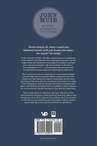 ‘Divine beauty all. Here I could stay tethered forever with just bread and water, nor would I be lonely.’ In the summer of 1869, John Muir joined a group of shepherds in the foothills of California’s Sierra Nevada mountains, that he might study and expand his knowledge of the plants, animals and rocks he found there. My First Summer in the Sierra – first published in 1911 – is the detailed and colourful diary he kept while tending sheep and exploring the wilderness. Muir’s account tracks his experiences in the Yosemite Valley and the High Sierra alongside faithful companion Carlo the St…mehr