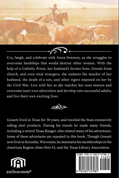 Cry, laugh, and celebrate with Anna Sweeney, as she struggles to overcome hardships that would destroy other women. With the help of a Catholic Priest, her husband's former boss, friends from church, and even total strangers, she endures the murder of her husband, the death of a son, and other rigors imposed on her by the Civil War. Live with her as she watches her sons mature and overcome tueir own adversities and develop into successful adults, and live their own exciting lives.