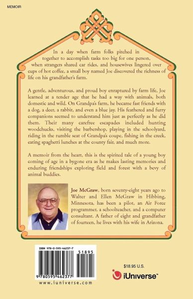 In a day when farm folks pitched in together to accomplish tasks too big for one person, when strangers shared car rides, and housewives lingered over cups of hot coffee, a small boy named Joe discovered the richness of life on his grandfather's farm. A gentle, adventurous, and proud boy enraptured by farm life, Joe learned at a tender age that he had a way with animals, both domestic and wild. On Grandpa's farm, he became fast friends with a dog, a deer, a rabbit, and even a blue jay. His feathered and furry companions seemed to understand him just as perfectly as he did them. Their many carefree escapades included hunting woodchucks, visiting the barbershop, playing in the schoolyard, riding in the rumble seat of Grandpa's coupe, fishing in the creek, eating spaghetti lunches at the county fair, and much more. A memoir from the heart, this is the spirited tale of a young boy coming of age in a bygone era as he makes lasting memories and enduring friendships exploring field and forest with a bevy of animal buddies.
