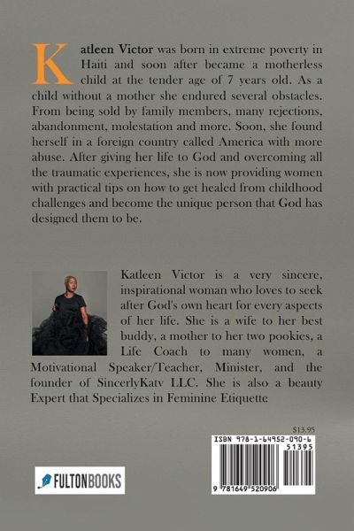 Katleen Victor Katleen Victor was born in extreme poverty in Haiti, and soon after, became a motherless child at the tender age of seven years old. As a child without a mother, she endured several obstacles. From being sold by family members, many rejections, abandonment, molestation, and more. Soon, she found herself in a foreign country called America with more abuse. After giving her life to God and overcoming all the traumatic experiences, she is now providing women with practical tips on how to get healed from childhood challenges and become the unique person that God has designed them to be. 152 45