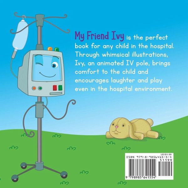My Friend Ivy is the perfect book for any child in the hospital. Through whimsical illustrations, Ivy, an animated IV pole, brings comfort to the child and encourages laughter and play even in the hospital environment. Grab this "Get Well Soon" book for your child to brighten their day.