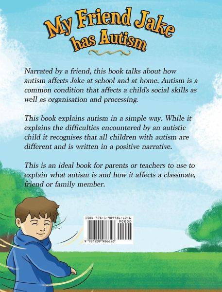 A picture book to help children understand autism. Narrated by a friend, this book talks about how autism affects Jake at school and at home. Autism is a common condition that affects a child's social skills as well as organisation and processing. This book explains autism in a simple way. While it explains the difficulties encountered by a child with autism, it recognises that all children with autism are different. It is written in a positive narrative. This version of the book is written in UK English. This is an ideal book for parents or teachers to use to explain what autism is and how it affects a classmate, friend or family member.