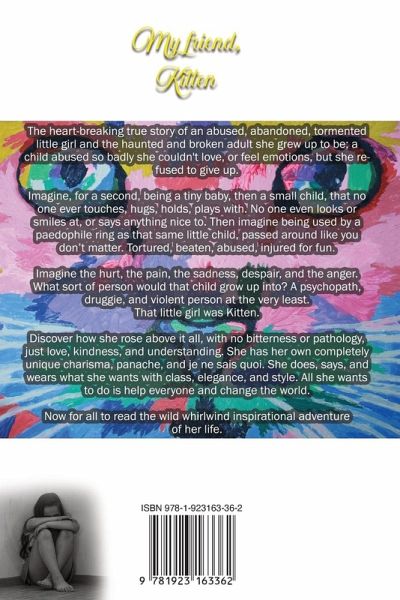 The heart-breaking true story of an abused, abandoned, tormented little girl and the haunted and broken adult she grew up to be; a child abused so badly she couldn't love, or feel emotions, but she refused to give up. Imagine, for a second, being a tiny baby, then a small child, that no one ever touches, hugs, holds, plays with. No one even looks or smiles at, or says anything nice to. Then imagine being used by a paedophile ring as that same little child, passed around like you don't matter. Tortured, beaten, abused, injured for fun. Imagine the hurt, the pain, the sadness, despair, and the anger. What sort of person would that child grow up into? A psychopath, druggie, and violent person at the very least. That little girl was Kitten. Discover how she rose above it all, with no bitterness or pathology, just love, kindness, and understanding. She has her own completely unique charisma, panache, and je ne sais quoi. She does, says, and wears what she wants with class, elegance, and style. All she wants to do is help everyone and change the world. Now for all to read the wild whirlwind inspirational adventure of her life.