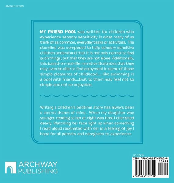 My Friend Pool was written for children who experience sensory sensitivity in what many of us think of as common, everyday tasks or activities. The storyline was composed to help sensory sensitive children understand that it is not only normal to feel such things, but that they are not alone. Additionally, this based-on-real-life narrative illustrates that they may even be able to find enjoyment in some of those simple pleasures of childhood.... like swimming in a pool with friends...that to them may feel not so simple and not so enjoyable.