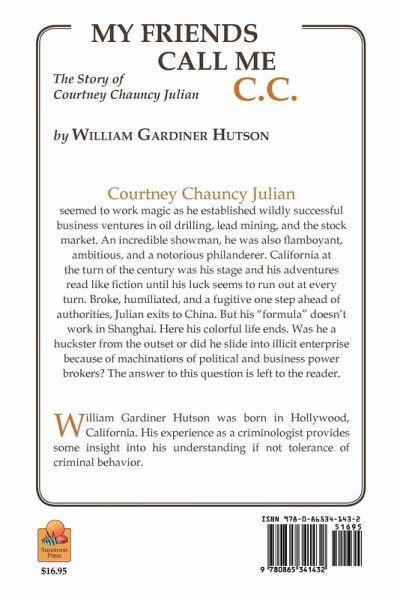 Courtney Chauncy Julian seemed to work magic as he established wildly successful business ventures in oil drilling, lead mining, and the stock market. An incredible showman, he was also flamboyant, ambitious, and a notorious philanderer. California at the turn of the century was his stage and his adventures read like fiction until his luck seems to run out at every turn. Broke, humiliated, and a fugitive one step ahead of authorities, Julian exits to China. But his "formula" doesn't work in Shanghai. Here his colorful life ends. Was he a huckster from the outset or did he slide into illicit enterprise because of machinations of political and business power brokers? The answer to this question is left to the reader. WILLIAM GARDINER HUTSON was born in Hollywood, California. His experience as a criminologist provides some insight into his understanding if not tolerance of criminal behavior.