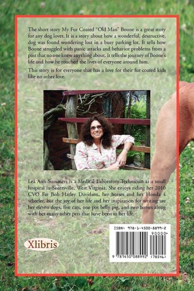 The short story My Fur Coated "Old Man" Boone is a great story for any dog lover. It is a story about how a wonderful, destructive, dog was found wondering lost in a busy parking lot. It tells how Boone struggled with panic attacks and behavior problems from a past that no one knew anything about. It tells the journey of Boone's life and how he touched the lives of everyone around him. This story is for everyone that has a love for their fur coated kids like no other love.