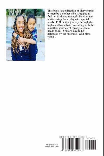 This book is a collection of diary entries chronicling one mother's struggles to raise a baby with severe medical illness. It illustrates the day to day roller coaster of emotions a special needs parent goes through given unpredictable happenings. It is a story of faith, courage and the miracles life has in store for those who believe in God's power.
