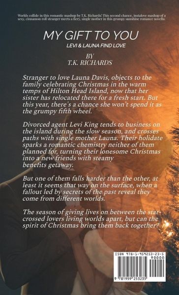 Worlds collide in this romantic mashup by T.K. Richards! This second chance, instalove mashup of a sexy, cinnamon roll stranger meets a fiery, single mother delivers the holiday feels with a cute meet cute, and zero fade to black scenes where it is all laid out under the mistletoe for a grumpy sunshine romance. Guess Who's Coming To Dinner... Stranger to love Launa Davis, objects to the family celebrating Christmas in the warm temps of Hilton Head Island, now that her sister has relocated there for a fresh start. But this year, there's a chance she won't spend it as the grumpy fifth wheel. Divorced agent Levi King tends to business on the island during the slow season, and crosses paths with single mother Launa. Their holidate sparks a romantic chemistry neither of them planned for, turning their lonesome Christmas into a new friends with steamy benefits getaway. But one of them falls harder than the other, at least it seems that way on the surface, when a fallout led by secrets of the past reveal they come from different worlds. The season of giving lives on between the star-crossed lovers living worlds apart, but can the spirit of Christmas bring them back together?
