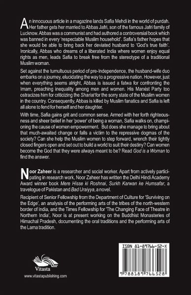 An innocuous article in a magazine lands nineyearold Safia Mehdi in the world of purdah. Her father gets her married to Abbas Jafri, son of the famous Jafri family of Lucknow. Abbas is a barrister and author of a controversial book. Safia's father hopes that she would be able to bring back her deviated husband to 'God's true faith'. Ironically, Abbas who dreams of a liberated India where women enjoy equal rights as men, leads Safia to break free from the stereotype of a traditional Muslim woman. Set against the tumultuous period of preIndependence, the husbandwife duo embarks on a journey, elucidating the way to a progressive nation. However, just when everything seems alright, Abbas is issued a fatwa for confronting the Imam, preaching inequality between men and women. His Marxist Party too ostracizes him for criticizing the Shariat for the sorry state of the Muslim women in the country. Consequently, Abbas is killed by Muslim fanatics and Safia is left all alone to fend for herself and her daughter.With time, Safia gains grit and common sense. Armed with her forth righteousness and sheer belief in her 'power' of being a woman, Safia walks on, championing the cause of women empowerment. But does she manage to bring about that muchawaited change or falls a victim to the repressive dogmas of the society? Can she help the Muslim women to step forward, wrench their tightly closed fingers open and set out to build a world to suit their destiny? Can women become the God that they were always meant to be? My God is a Woman tries to seek answers to some of these questions.
