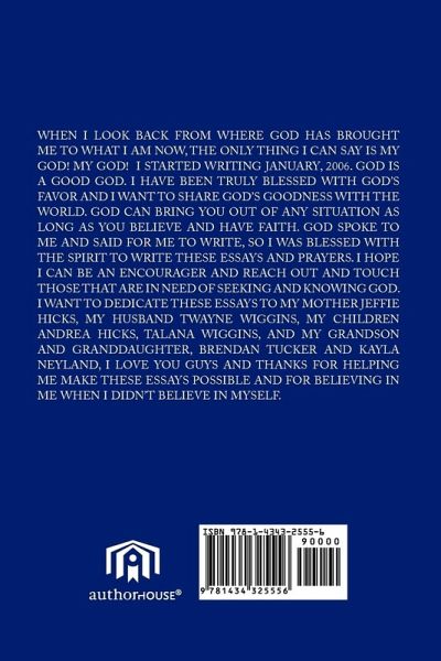 MY GOD! MY GOD! When you turn your life over to GOD, the minute you surrender all, it's a long hard road to travel. The enemy gets so busy in your life, shaking and stirring up trouble. But we must remember to keep the faith no matter what comes our way. Life is a challenge, filled with trials and tribulations. MY GOD! MY GOD! is what I feel when I think about GOD'S presence in my life. MY GOD! MY GOD! is what I say when I see the awesome miracles that GOD has performed in my life.God spoke to me one day and said I want you to write about your experience on this faith walk. I pray that these essays will be a blessing to everyone who is seeking to find that close intimate relationship with GOD. I hope I can be an encourager to anyone that is traveling on that straight and narrow path called righteousness. May GOD bless everyone. "Taste and see that the LORD is good; blessed is the man who takes refuge in him. PSALM 34:8