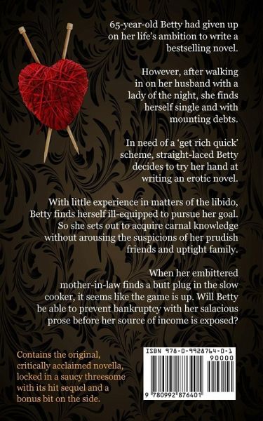65-year-old Betty had given up on her life's ambition to write a bestselling novel. However, after walking in on her husband with a lady of the night, she finds herself single and with mounting debts. In need of a 'get rich quick' scheme, straight-laced Betty decides to try her hand at writing an erotic novel. With little experience in matters of the libido, Betty finds herself ill-equipped to pursue her goal. So she sets out to acquire carnal knowledge without arousing the suspicions of her prudish friends and uptight family. When her embittered mother-in-law finds a butt plug in the slow cooker, it seems like the game is up. Will Betty be able to prevent bankruptcy with her salacious prose before her source of income is exposed? The original, critically acclaimed novella, locked in a saucy threesome with its hit sequel and a bonus bit on the side.
