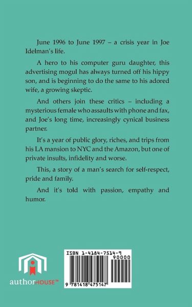 June 1996 to June 1997 - a crisis year in Joe Idelman's life. A hero to his computer guru daughter, this advertising mogul has always turned off his hippy son, and is beginning to do the same to his adored wife, a growing skeptic. And others join these critics - including a mysterious female who assaults with phone and fax, and Joe's long time, increasingly cynical business partner. It's a year of public glory, riches, and trips from his LA mansion to NYC and the Amazon, but one of private insults, infidelity and worse. This, a story of a man's search for self-respect, pride and family. And it's told with passion, empathy and humor.