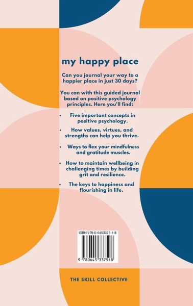 My Happy Place takes you on a 30-day journey to a happier place (and helps you to build the habit of a happier mindset) through guided journal prompts that draw on the positive psychology concepts of:Happiness Character strengths and virtues PERMA-H (positive psychology, engagement, positive relationships, meaning, accomplishments, and health) Grit Gratitude How can positive psychology help you get to a happier place? Positive psychology is all about helping people flourish and thrive in life. It looks at those ingredients for a well-lived life, one in which you feel engaged in living a life filled with meaning and purpose. These are key to building resilience. Journalling can help you to build resilience through the intentional and regular practice of evidence-based wellbeing interventions, and has been shown to improve psychological wellbeing and stress management, and journalling from a positive psychology approach encourages you to regularly see the glass as being half-full.