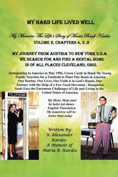 This book is the second Volume of the memoirs' story of Maria Banfi Kardos. This volume gives an insight into the experiences. challenges, and hardships that the Kardos family faced on their legal immigration to America. They arrived in New York in 1956 just like many foreigners that "Wanted to have an "Opportunity to achieve The American Dream." We were sponsored by a farmer in Patton Missouri but decided to go off on our own. The Lutheran Organization had flight tickets ready for us, but we respectfully declined. With our eyes wide open and our hopes running high we ventured out into New York City, being disappointed on a few levels. The first one had me actually had me thinking of reversing course and if we had the money we would have returned to Europe. The other was our contact person, family in New Jersey that we came to see somehow conspicuously fell through, "Yes come see us when you arrive in the states." Not to be deterred by these setbacks, we had no choice but to push forward. And the New York taxi driver that drove us all around the city only to take Eighty Dollars of the One Hundred Dollars we were given by US Customs. By Gods saving grace we found a contact who spoke Hungarian in massive New York that My Karl met in the displaces persons camp in Austria and stayed in his apartment. We then rode the train to Philadelphia and then boarded one to Cleveland. By chance we ran into a man that spoke Slovenian and coincidently he was traveling to Cleveland. We arrived in Cleveland Ohio with a mere few dollars to our name and three very sleepy and exhausted children. Noe our lives really start, no practice runs, no going back, this is it where we make our successes and chart our destiny with the help of God Almighty.