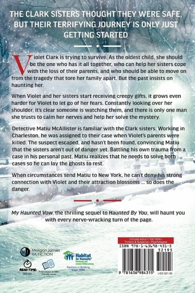 The Clark sisters thought they were safe, but their terrifying journey is only just getting started. Violet Clark is attending college in New York at one of the most prestigious art schools in the nation. As the oldest child, she should be the one who has it all together, who can help her sisters cope with the loss of their parents, and who should be able to move on from the tragedy that tore her family apart.But the past insists on haunting her. When Violet starts to struggle in her dance classes and a mysterious bouquet of roses arrives on her doorstep, it grows even harder to let go of her fears. Constantly looking over her shoulder, it's clear someone is watching her, and she can’t figure out who. Soon, she’s not the only one receiving creepy notes and photos. Her sisters are in danger, too, and there is only one man she trusts to calm her nerves and help her solve the mystery.Detective Matiu McAllister is all too familiar with the Clark sisters. Working in Charleston, he was assigned to their case when Violet’s parents were killed. Not only did the suspect escape, but now they can’t find him, and Matiu is convinced that Violet, Genevieve, and Konnie are not out of danger yet. Battling his own ghosts and another case from his personal past, Matiu quickly realizes that he needs to solve both cases so he can lay those ghosts to rest. Matiu and Violet have been communicating since that tragic night in Charleston. When circumstances send Matiu to New York, they can’t deny that there is a strong connection between them, and their attraction blossoms. So does the danger.Forced back to Charleston, Matiu leaves New York. But when Violet’s life is threatened, he is desperate, more than ever, to get back and save her. My Haunted Vow, the thrilling sequel to Haunted by You, will haunt you with every nerve-wracking turn of the page.