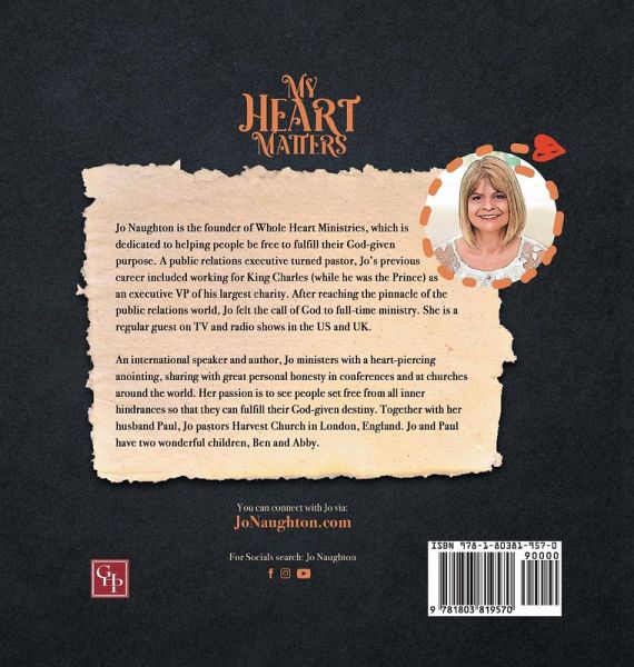 PR executive turned pastor, Jo Naughton is an international speaker, prolific author and a regular guest on TV and radio shows. Once a VP for King Charles's most prestigious charity, Jo considers it a great privilege to now work for the King of Kings. Founder of Whole Heart Ministries, Jo is dedicated to helping men and women be free to fulfil their God-given purpose through her books, courses, conferences and Mentoring Network.¿Together with her husband Paul, Jo pastors Harvest Church London in England and they have two wonderful children, Ben and Abby.