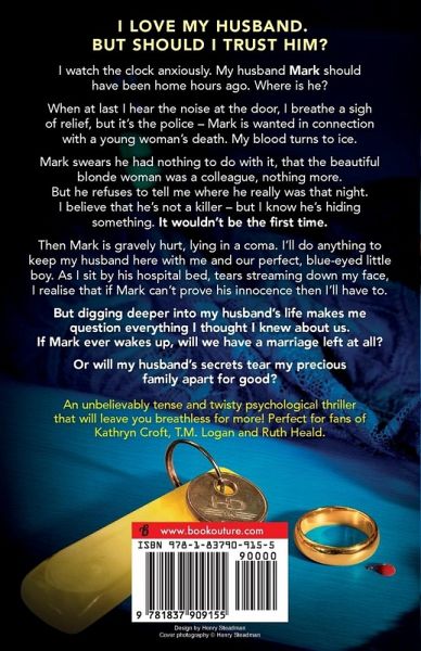 I love my husband. But should I trust him? I watch the clock anxiously. My husband Mark should have been home hours ago. Where is he? When at last I hear the noise at the door, I breathe a sigh of relief, but it's the police - Mark is wanted in connection with a young woman's death. My blood turns to ice. Mark swears he had nothing to do with it, that the beautiful blonde woman was a colleague, nothing more. But he refuses to tell me where he really was that night. I believe that he's not a killer - but I know he's hiding something. It wouldn't be the first time. Then Mark is gravely hurt, lying in a coma. I'll do anything to keep my husband here with me and our perfect, blue-eyed little boy. As I sit by his hospital bed, tears streaming down my face, I realise that if Mark can't prove his innocence then I'll have to. But digging deeper into my husband's life makes me question everything I thought I knew about us. If Mark ever wakes up, will we have a marriage left at all? Or will my husband's secrets tear my precious family apart for good? An unbelievably tense and twisty psychological thriller that will leave you breathless for more! Perfect for fans of Kathryn Croft, T.M. Logan and Ruth Heald. What readers are saying about Liz Lawler: 'Wow! What a book! I couldn't read it fast enough... absolute magic! Brilliantly unsettling... Riveting and powerful! The pages turn themselves!' NetGalley reviewer, ¿¿¿¿¿ 'Absolutely amazing! I loved it... Kept the pages turning long into the night. I couldn't put it down... Kept me on the edge of my seat... What an ending!!' Goodreads reviewer, ¿¿¿¿¿
