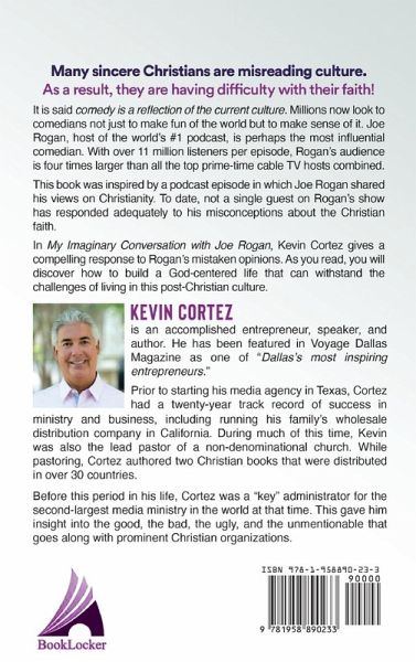 Many sincere Christians are misreading culture, and as a result, they are having difficulty with their faith. So, what is going on? It is said that comedy reflects the current culture, and many people now look to comedians not just to make fun of the world but to make sense of it. Joe Rogan, the host of the world's #1 podcast, is one of the most influential comedians and media personalities. With over 11 million listeners per episode, Rogan's audience is four times larger than all the top prime-time cable TV hosts combined. This book was inspired by a podcast episode in which Joe Rogan shared his views on Christianity. To date, not a single guest on Rogan's show has responded adequately to his misconceptions about the Christian faith. Thus, the other side of the story has not been presented to his millions of listeners. In "My Imaginary Conversation with Joe Rogan About Christianity, the Supernatural, and Little Green Men: A Survival Guide for Living in a Post-Christian Culture," Kevin Cortez gives a compelling response to Rogan's mistaken opinions. As you read, you will discover how to respond to those who malign your beliefs amicably. The author takes complex theological concepts and presents them in a way that is easy to understand and apply to everyday life. He draws on a wide range of historical, philosophical, and scientific sources to build his case, and his analysis is rigorous and well-supported. He addresses many of the common criticisms of Christianity, such as its role in unfair atrocities and its perceived irrelevance in the face of modern science. He offers insightful responses that challenge readers to rethink their assumptions. The book is divided into fourteen chapters and five "Survival Guides," each addressing a different aspect of Christianity's most commonly misunderstood concepts. It navigates a range of topics, including morality, science, philosophy, and history, to demonstrate Christianity's enduring relevance and importance in our contemporary world. Each chapter includes simple questions encouraging readers to reflect on their own beliefs and attitudes toward God. In addition to using scripture to support his claims, Cortez uses his forty years of personal experiences and encounters within the Christian subculture to illustrate his points. Perhaps most notably, he is unafraid to tackle controversial issues, such as the miraculous, New Atheism, psychedelics, UFOs/aliens, The Big Bang Theory, speaking in tongues, the "born gay" question, the prosperity gospel, and demonology. His thought-provoking perspective is refreshingly nuanced and balanced. Whether you are a lifelong Christian or just beginning to explore faith, this book will deepen your understanding of God and give you a wealth of biblical references and theological concepts to build a God-centered life that can withstand the challenges of living in this post-Christian culture. Overall, for anyone interested in exploring the relevance and importance of Christianity in the modern world, Cortez's careful analysis, engaging writing, and personal reflections make this book a must-read for believers and skeptics alike.