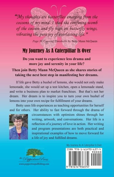 If life gave Betty a bushel of lemons, she would not only make lemonade, she would set up a test kitchen, open a lemonade stand, and write a business plan to market franchises. But that's not her dream. Her dream is to inspire you to turn your own bushel of lemons into your own recipe for fulfillment of your dreams. Betty uses life experiences as teaching opportunities for herself and for others. Her ability to fast forward through the drama of circumstances with optimism shines through her writing, artwork, and conversations. Her life is a reflection of a journey of love in action. Her writing and program presentations are both practical and inspirational examples of how to move forward for a life of joy and fulfilled dreams.
