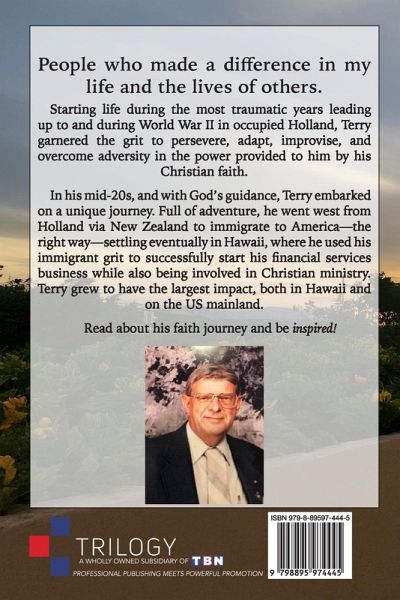 People who made a difference in my life and the lives of others. Starting life during the most traumatic years leading up to and during World War II in occupied Holland, Terry garnered the grit to persevere, adapt, improvise, and overcome adversity in the power provided to him by his Christian faith. In his mid-20s, and with God's guidance, Terry embarked on a unique journey. Full of adventure, he went west from Holland via New Zealand to immigrate to America-the right way, settling eventually in Hawaii, where he used his immigrant grit to successfully start his financial services business while also being involved in Christian ministry. Terry grew to have the largest impact, both in Hawaii and on the US mainland. Read about his faith journey and be inspired!