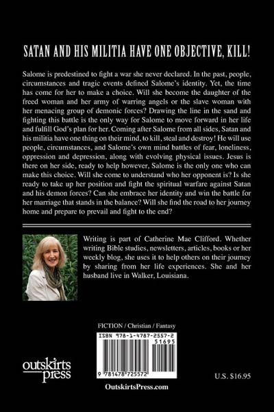Satan and his militia have one objective, kill! Salome is predestined to fight a war she never declared. In the past, people, circumstances and tragic events defined Salome's identity. Yet, the time has come for her to make a choice. Will she become the daughter of the freed woman and her army of warring angels or the slave woman with her menacing group of demonic forces? Drawing the line in the sand and fighting this battle is the only way for Salome to move forward in her life and fulfill God's plan for her. Coming after Salome from all sides, Satan and his militia have one thing on their mind, to kill, steal and destroy! He will use people, circumstances, and Salome's own mind battles of fear, loneliness, oppression and depression, along with evolving physical issues. Jesus is there on her side, ready to help however, Salome is the only one who can make this choice. Will she come to understand who her opponent is? Is she ready to take up her position and fight the spiritual warfare against Satan and his demon forces? Can she embrace her identity and win the battle for her marriage that stands in the balance? Will she find the road to her journey home and prepare to prevail and fight to the end?