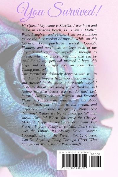 This All-In-One Journal/Planner is designed to encourage women all over the world to become a better version of herself while overcoming personal issues, trials and tribulations. This Journal includes: Encouragement Quotes, Goal Tracking, Budget Tracking, Fitness Tracking, Calendar's, Note Taking and more.