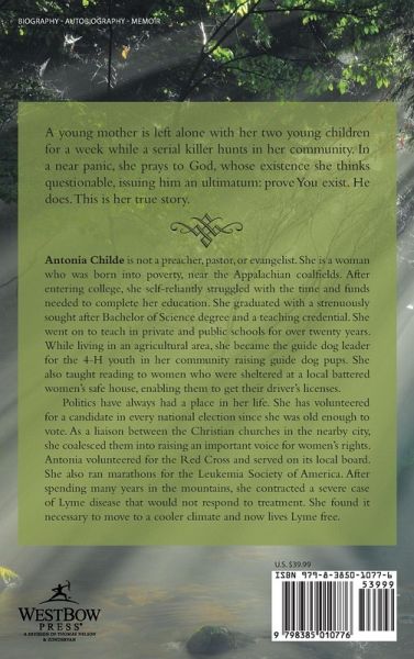 A young mother is left alone with her two young children for a week while a serial killer hunts in her community. In a near panic, she prays to God, whose existence she thinks questionable, issuing him an ultimatum: prove You exist. He does. This is her true story.