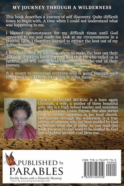 This book describes a journey of self discovery. Quite difficult times to begin with. A time when I could not understand what was happening to me. I blamed circumstances for my difficult times until God appeared to me and made me look at my circumstances in a positive light. I therefore learned to extract the best out of my difficult times.I finish the book by advising others to make the best out their difficult situations knowing very well that He who called us is faithful and will surely hold their hands to the end of their journey. It is meant to encourage everyone who is going through such times and to tell them not to quit in Jesus Name. GRACE WANGARI MUIGAI is a born again Christian, a wife, a mother of three beautiful girls. She is a High School teacher and ministers as the Christian Union Patron. She also serves God in various capacities in her local church. Her journey through the wilderness is a true picture of someone who has been molded by God to become what she is today. As you read this book, purpose in your mind to be molded by God into a faithful servant. God bless you.