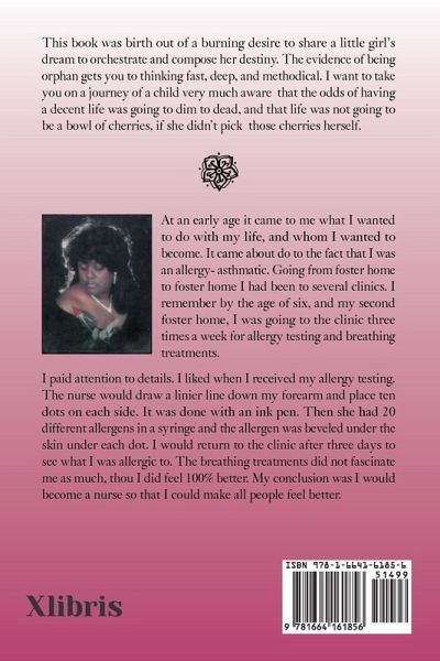 This book was birth out of a burning desire to share a little girl's dream to orchestrate and compose her destiny. The evidence of being orphan gets you to thinking fast, deep, and methodical. I want to take you on a journey of a child very much aware that the odds of having a decent life was going to dim to dead, and that life was not going to be a bowl of cherries, if she didn't pick those cherries herself.
