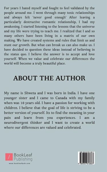 For years I hated myself and fought to feel validated by the people around me. I went through many toxic relationships and always felt 'never good enough' After leaving a particularly destructive romantic relationship, I had my awakening. I started listening to the lessons that the universe and my life were trying to teach me. I realized that I and so many others have been living in a matrix of our own making. We have created systems and rules that limit us and stunt our growth. But what can break us can also make us. I have decided to question these ideas instead of believing in the status quo. I believe the answer is to accept and love yourself. When we value and celebrate our differences the world will become a truly beautiful place.