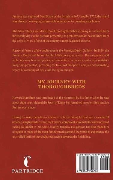 Jamaica was captured from Spain by the British in 1655, and by 1752, the island was already developing an enviable reputation for breeding race horses. The book offers a tour d'horizon of thoroughbred horse racing in Jamaica from those early days to the present, presenting its problems and its possibilities from the point of view of one of the country's most seasoned experts. A special feature of the publication is the Jamaica Derby Gallery. In 2020, the Jamaica Derby will be run for the 100th consecutive year. Race statistics, and with only very few exceptions, a commentary on the race and a representative image are presented, providing for lovers of the sport a unique and fascinating record of a century of first class racing in Jamaica.