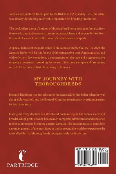 Jamaica was captured from Spain by the British in 1655, and by 1752, the island was already developing an enviable reputation for breeding race horses. The book offers a tour d'horizon of thoroughbred horse racing in Jamaica from those early days to the present, presenting its problems and its possibilities from the point of view of one of the country's most seasoned experts. A special feature of the publication is the Jamaica Derby Gallery. In 2020, the Jamaica Derby will be run for the 100th consecutive year. Race statistics, and with only very few exceptions, a commentary on the race and a representative image are presented, providing for lovers of the sport a unique and fascinating record of a century of first class racing in Jamaica.