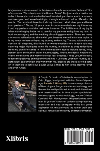 My journey is documented in this two-volume book numbers 14th and 15th of my series "Christianity and the Human Brain". My journey is a testimony to Lord Jesus who took me by the hand from being a dismal soul to a renown neurosurgeon and anesthesiologist through a dream I had in 1974 with his words: "Son study all these books in my hand and I shall bless you and bless your patients". Today, 35 years later, I continue to dedicate my life to my Lord, my patients and the residents I mentor. The fulfillment of my joy is when my Almighty helps me to care for my patients and guides my hand in both neurosurgery and the teaching of coming generations. There are many stories and reflections to share with you. Lessons learned in various topics. It is my honor to share with you my journey and my Joy. The two volume books contain 181 chapters, distributed in twenty sections (ten in each volume) covering major highlights in my life journey. In addition to deep reflections from my own life stories in faith and medicine, topics include Jesus, love, patient care, the human brain, neurosurgery, illness, residents, healthcare crises, meditations and memories over four decades. I hope you, the reader, to take the positives of my journey and find it useful to your own journey as a participant sojourning in this world with me. Blessed are those striving early on in their life to serve our Savior Jesus Christ, to him is the glory for ever and ever, Amen.