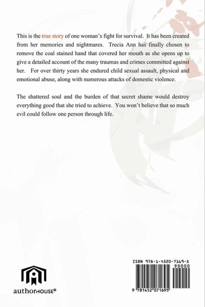 This is a true story of one person's struggle to overcome the cruelty of her childhood. The man who assaulted the child became her stepfather and continued his torture for twelve long years. His disgusting torment would leave her so severely scarred, that it would destroy everything good in her life for the next thirty years. Her path in life became one of continued violence against her and although she was able to achieve professional success, she could never fully heal from the trauma. Trecia Ann was a strong survivor though and continued to push her way through life despite these crimes against her. Now she has finally removed the coal stained hand that snuck in to take away her breath and keep her silent. As she opens up in this story, she is standing strong and telling the details of her secret shame.