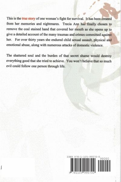 Read the true horror story of one person's struggle to overcome the "trained habits" brainwashed into her beliefs from twelve brutal years of child abuse and severe neglect, leaving both physical and emotional scars. It is only after a twenty year path in continued violence that she is now able to view the true impact as she sees the cycle of dysfunction continue into her grandchildren's lives. It is for this reason she has chosen to finally remove the coal stained hand that snuck in to take away her breath and keep her silent. As she opens up in this story to conquer her freedom, she is standing strong and telling the details of her secret shame; educating and empowering all of society to prevent and intervene against the crimes of abuse and family violence.