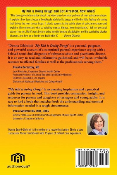 My Kid is Doing Drugs and Got Arrested: Now What? is my story of hope and success. The book gives information about the widespread societal problem of teen substance abuse. It explains how teens become hopelessly addicted to drugs and the horrible feeling of craving that drives the teen to use drugs. It alerts parents to the subtle signs of substance abuse and explains the connection with co-existing mental illness. More importantly, I tell my personal story of my son, Matt's rock bottom drive into the depths of addiction and his coexisting bipolar disorder, and how as a family we dealt with it. You will learn about Matt's arrest, rehab, and recovery told from my perspective as a mother and health care provider. I offer insight into the feelings of fear, hopelessness, and failure as a parent. You will learn how this problem affected my family and how we weathered the storm. I use stories that illustrate important issues for parents to recognize in their teens. Suggestions for treatment are offered