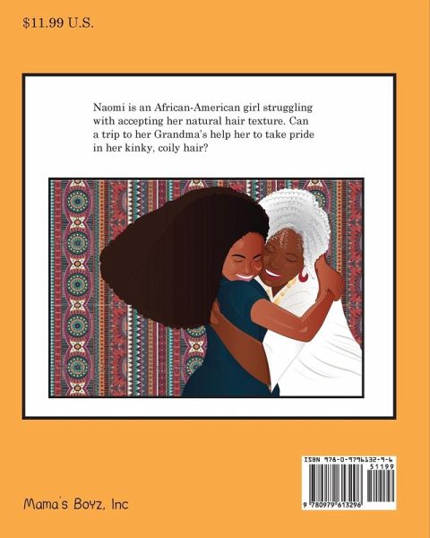 Naomi is an African-American girl struggling with accepting her natural hair texture. She wishes should could have hair like her friends, long and blonde or big brown curls. Can a trip to her Grandma's help her to take pridein her kinky, coily hair?