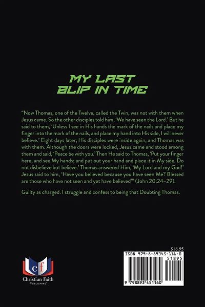 "Now Thomas, one of the Twelve, called the Twin, was not with them when Jesus came. So the other disciples told him, 'We have seen the Lord.' But he said to them, 'Unless I see in His hands the mark of the nails and place my finger into the mark of the nails, and place my hand into His side, I will never believe.' Eight days later, His disciples were inside again, and Thomas was with them. Although the doors were locked, Jesus came and stood among them and said, 'Peace be with you.' Then He said to Thomas, 'Put your finger here, and see My hands; and put out your hand and place it in My side. Do not disbelieve but believe.' Thomas answered Him, 'My Lord and my God!' Jesus said to him, 'Have you believed because you have seen Me? Blessed are those who have not seen and yet have believed'" (John 20:24-29). Guilty as charged. I struggle and confess to being that Doubting Thomas.