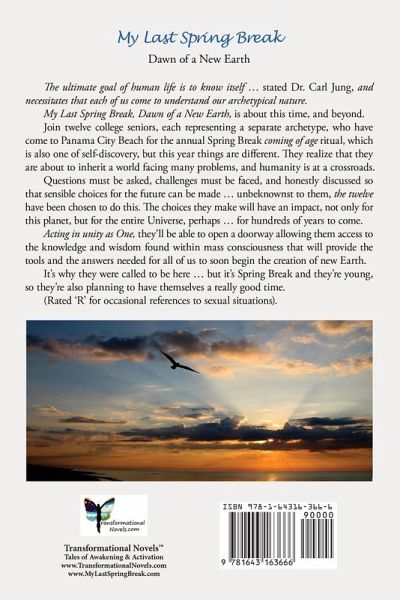 The ultimate goal of human life is to know itself … stated Dr. Carl Jung, and necessitates that each of us come to understand our archetypical nature. My Last Spring Break, Dawn of a New Earth, is about this time, and beyond. Join twelve college seniors, each representing a separate archetype, who have come to Panama City Beach for the annual Spring Break coming of age ritual, which is also one of self-discovery, but this year things are different. They realize that they are about to inherit a world facing many problems, and humanity is at a crossroads. Questions must be asked, challenges must be faced, and honestly discussed so that sensible choices for the future can be made … unbeknownst to them, the twelve have been chosen to do this. The choices they make will have an impact, not only for this planet, but for the entire Universe, perhaps … for hundreds of years to come. Acting in unity as One, they'll be able to open a doorway allowing them access to the knowledge and wisdom found within mass consciousness that will provide the tools and the answers needed for all of us to soon begin the creation of new Earth. It's why they were called to be here … but it's Spring Break and they're young, so they're also planning to have themselves a really good time. (Rated 'R' for occasional references to sexual situations).