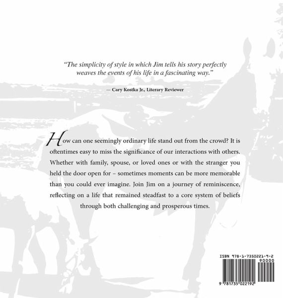 H¿ow can one seemingly ordinary life stand out from the crowd¿? ¿It is oftentimes easy to miss the significance of our interactions with others¿. ¿Whether with family¿, ¿spouse¿, ¿or loved ones or with the stranger you held the door open for¿ ¿-¿ ¿sometimes moments can be more memorable than you could ever imagine¿. ¿Join Jim on a journey of reminiscence¿, ¿reflecting on a life that remained steadfast to a core system of beliefs through both challenging and prosperous times¿.¿