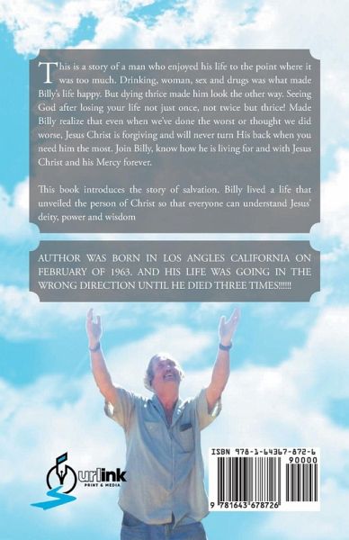 This is a story of a man who enjoyed his life to the point where it was too much. Drinking, woman, sex and drugs was what made Billy’s life happy. But dying thrice made him look the other way. Seeing God after losing your life not just once, not twice but thrice! Made Billy realize that even when we’ve done the worst or thought we did worse, Jesus Christ is forgiving and will never turn His back when you need him the most. Join Billy, know how he is living for and with Jesus Christ and his Mercy forever. is book introduces the story of salvation. Billy lived a life that unveiled the person of Christ so that everyone can understand Jesus’ deity, power and wisdom