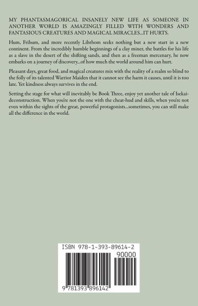 MY PHANTASMAGORICAL INSANELY NEW LIFE AS SOMEONE IN ANOTHER WORLD IS AMAZINGLY FILLED WITH WONDERS AND FANTASIOUS CREATURES AND MAGICAL MIRACLES...IT HURTS. Hum, Frihum, and more recently Librhom seeks nothing but a new start in a new continent. From the incredibly humble beginnings of a clay miner, the battles for his life as a slave in the desert of the shifting sands, and then as a freeman mercenary, he now embarks on a journey of discovery...of how much the world around him can hurt. Pleasant days, great food, and magical creatures mix with the reality of a realm so blind to the folly of its talented Warrior Maiden that it cannot see the harm it causes, until it is too late. Yet kindness always survives in the end. Setting the stage for what will inevitably be Book Three, enjoy yet another tale of Isekai-deconstruction. When you're not the one with the cheat-hud and skills, when you're not even within the sights of the great, powerful protagonists...sometimes, you can still make all the difference in the world.